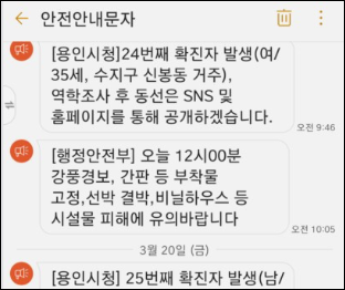 • 긴급재난문자: 테러 및 방사선 물질 유출 등 긴급 상황에서 발송됩니다.