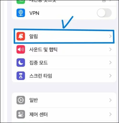 • 알림 메뉴 선택: 설정 목록에서 '알림' 메뉴를 선택합니다.